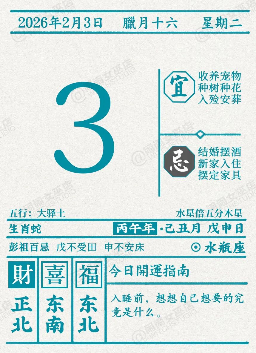 闹闹女巫店今日运势2026年2月3日