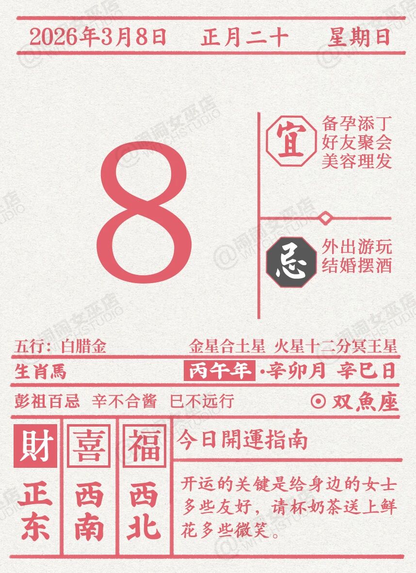 闹闹女巫店今日运势2026年3月8日