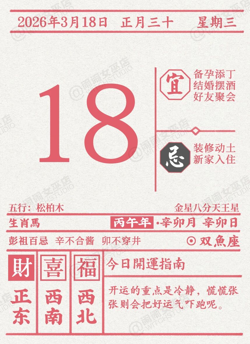 闹闹女巫店今日运势2026年3月18日