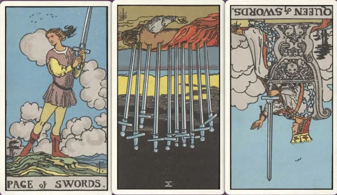 牌:宝剑侍从+ 宝剑十- 宝剑皇后-