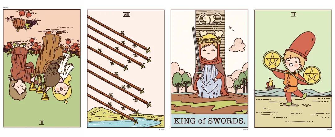 逆位圣杯三、正位权杖八