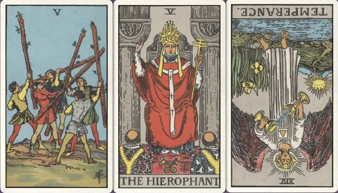 牌:权杖五+ 教皇+ 节制-