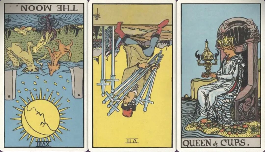 牌:月亮- 宝剑七- 圣杯皇后+