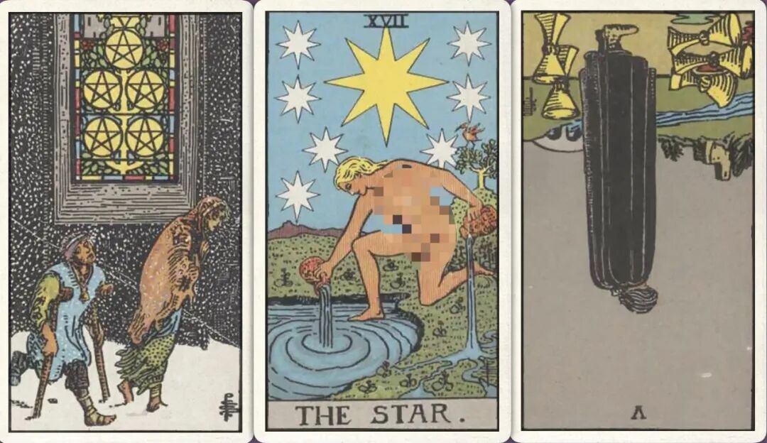 牌:星币五+ 星星+ 圣杯五-